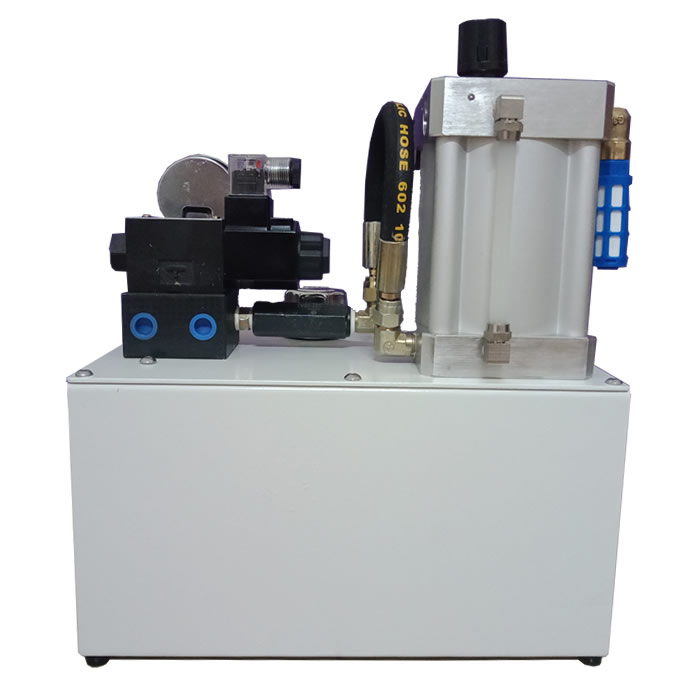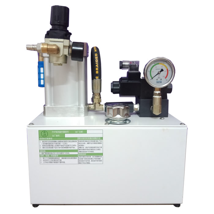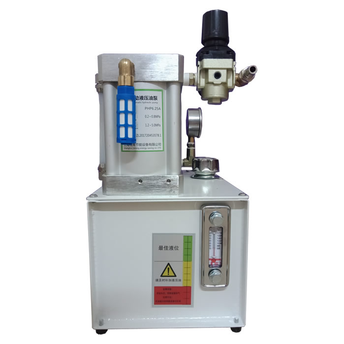 1泵體是通過輸入低氣壓氣體作用于大面積活塞側(cè)通過連桿使小面積活塞側(cè)產(chǎn)生高液壓,兩側(cè)的活塞壓力相等時,泵體有壓力輸出,活塞處于靜止?fàn)顟B(tài)(工件處于夾緊或放松狀態(tài)),此時不消耗能量。